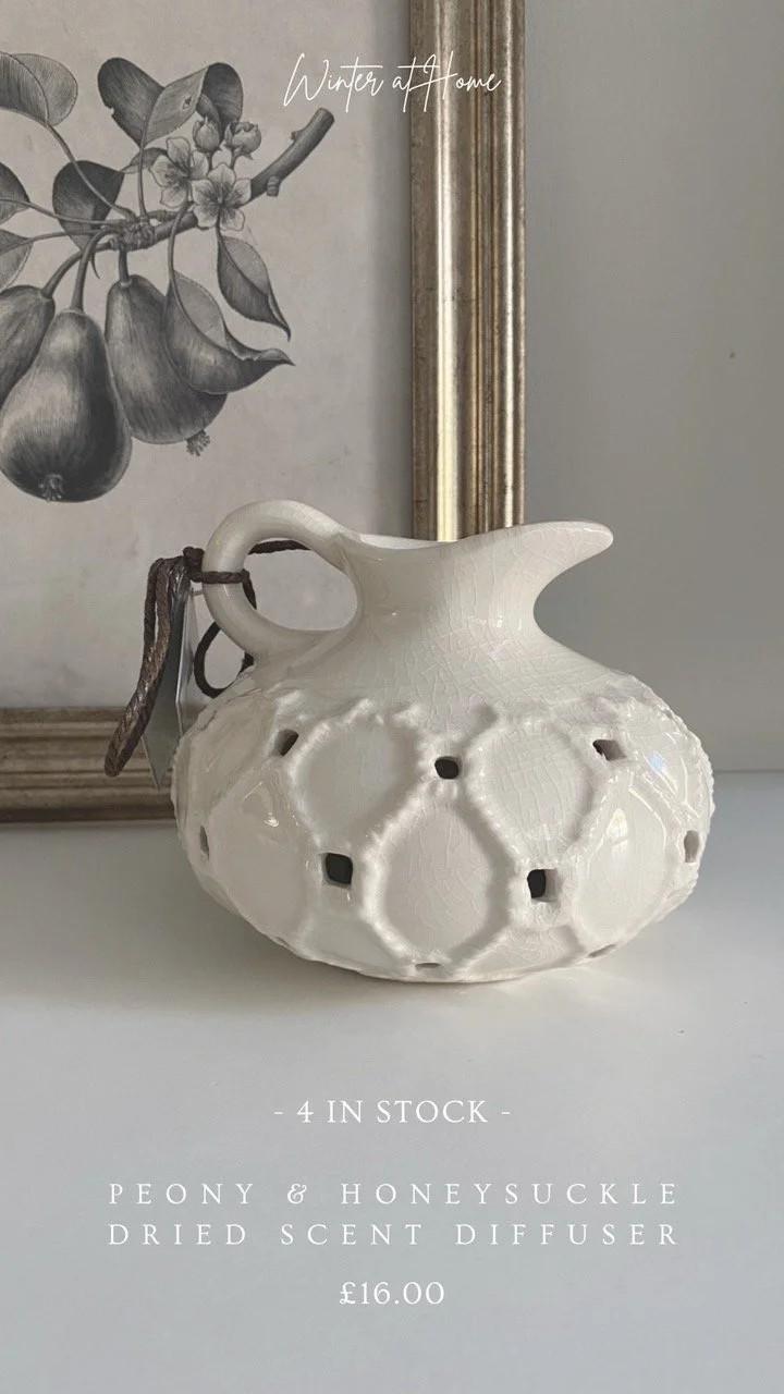 Rich in fragrance and refillable to any scent you wish, this dried scent diffuser is the perfect addition to your open shelving or display, emitting beautiful tones of peony and honeysuckle gently into your room.
